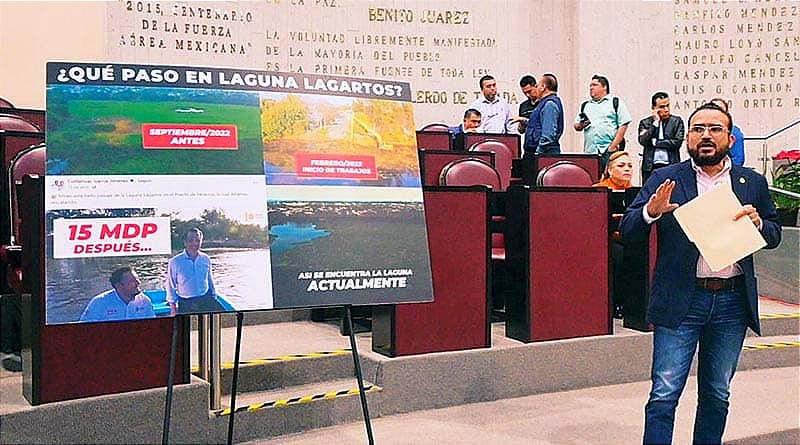 En esa fecha, cuestionó la diputada panista, el Procurador de Medio Ambiente informó que se destinarían 60 millones de pesos en dragado y limpieza de la Laguna y que los trabajos iniciarían a más tardar un mes después, toda vez que los estudios realizados determinaron la existencia de corriente de agua que brota del suelo de manera natural, pero que estaba tapada por la actividad humana y por ello se procedería al desazolve.