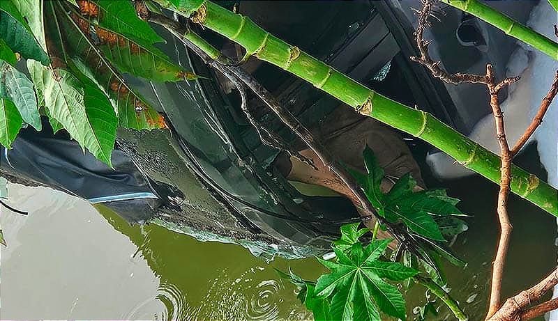 El automóvil circuló sin control y cayó en picada al canal de aguas negras, cerca de las 04:00 horas, quedando hundido en el afluente y fue hasta cerca de las 08:00 horas cuando transeúntes detectaron un auto sumergido en ese lugar.