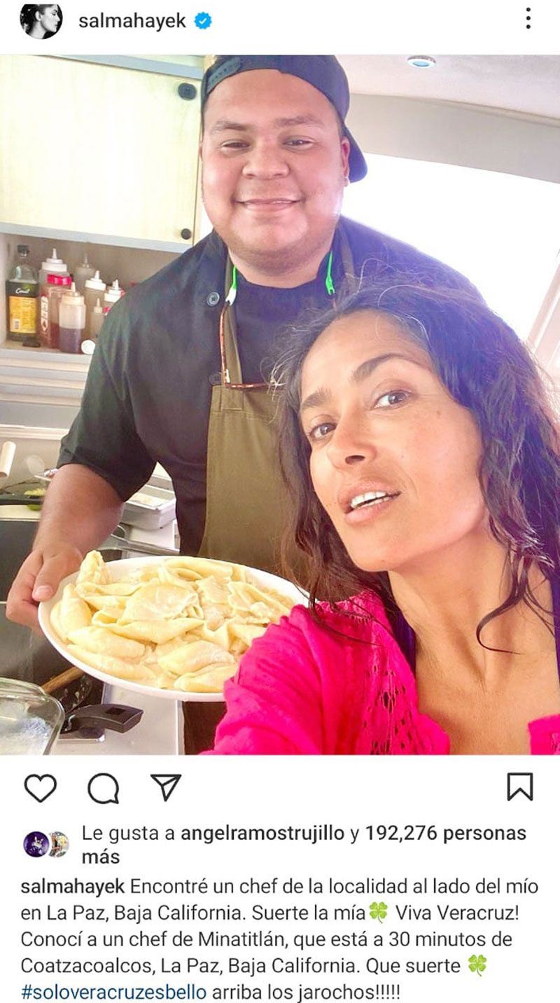 Al encontrarse de vacaciones con su familia en Los Cabos, en La Paz Baja California, la actriz veracruzana Salma Hayek se encontró a un chef originario de Minatitlán, municipio vecino de donde es originaria, Coatzacoalcos, y lo compartió en sus redes sociales.