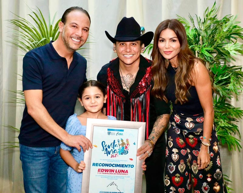 Previo a la noche estelar, el alcalde de Boca del Río, Juan Manuel Unánue Abascal junto a la presidenta del DIF Municipal; Melina Rivera de Unánue y su hija Aitana, entregaron un merecido reconocimiento a la agrupación regiomontana que puso a bailar y a cantar a boqueños y visitantes que se dieron cita en el último día de actividades.