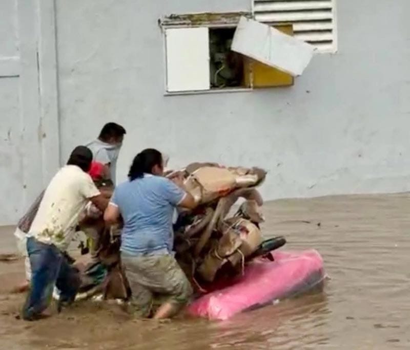En medio de la inundación y en zonas donde se podía ver que el agua estaba casi a un metro de altura quedaron inmortalizados en fotografía y video estas personas que llevaban desde colchones, baterías para auto, otros que sacaron un colchón que pusieron a flotar y encima le iban colocando otras muchas cosas mas llevándoselas.