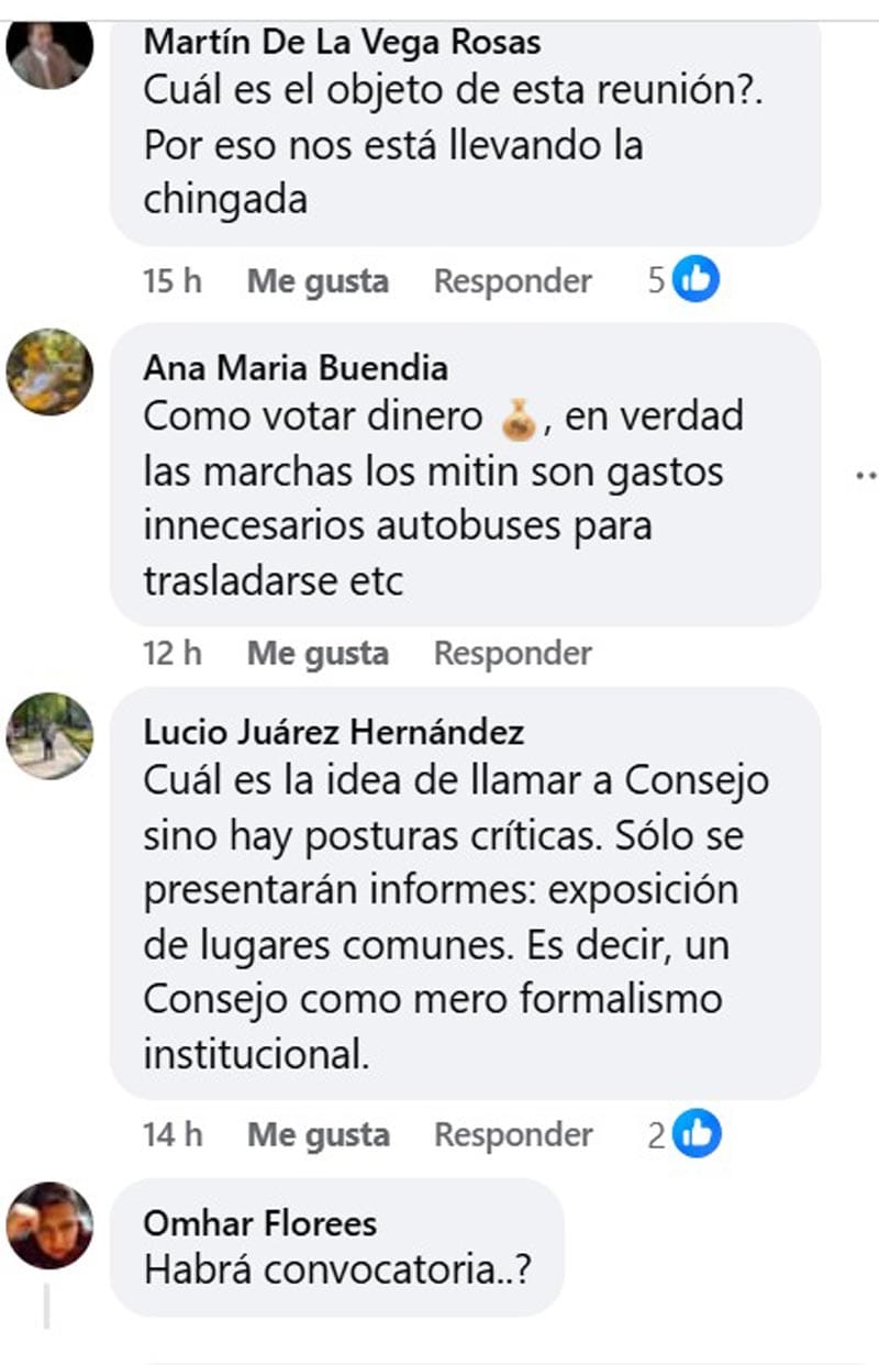 Martín de La Vega Rosas escribió “¿Cuál es el objeto de esta reunión?. Por eso nos está llevando la chingada”.