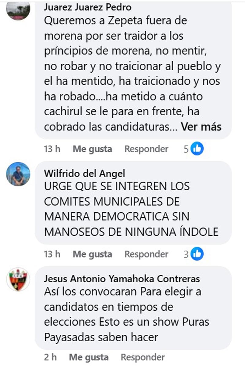 En la publicación que se hizo en redes sociales, los propios morenistas se encargaron de externar que no están contentos con el trabajo de Esteban Ramirez Zepeta.