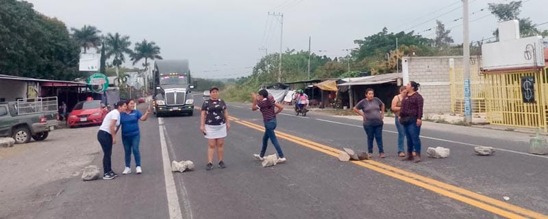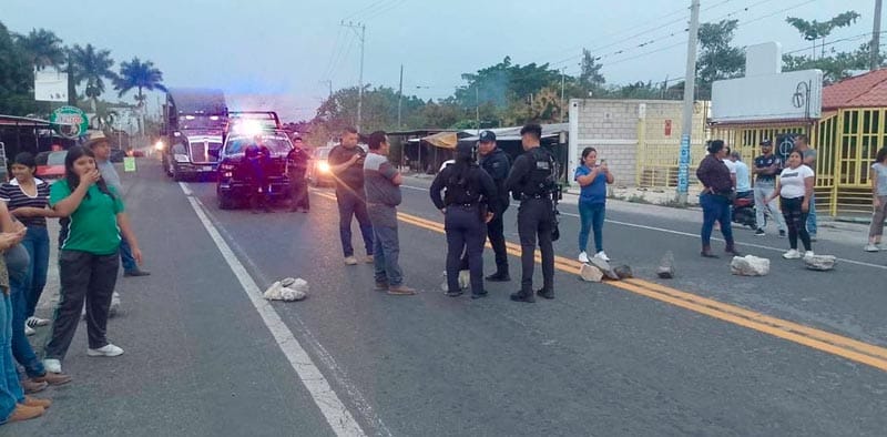 En Emiliano Zapata, pobladores bloquearon la carretera en Palo Gacho acusando discriminación a una aspirante.