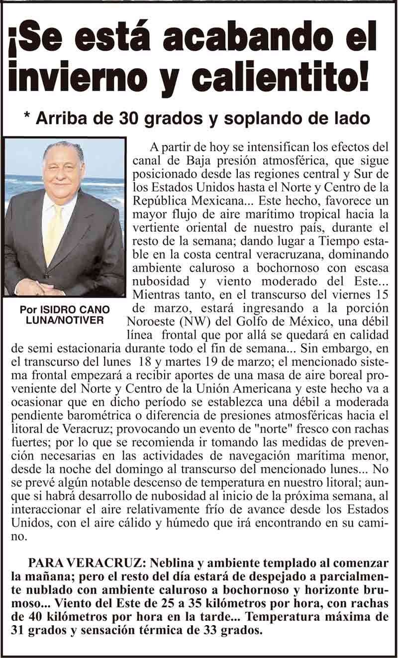 PRIMERA ¡SE ESTÁ ACABANDO EL INVIERNO Y CALIENTITO! - |* ARRIBA DE 30 GRADOS Y SOPLANDO DE LADO 13 marzo 2024 Más Noticias ¡YA HAY TERNA! - RAÚL PEIMBERT EN LA LISTA ¡“CEMENTERIO”! - DE ULÚAS ¡INAUGURA PATY OTRA CALLE! ¡NO LE CREYERON! - Y LO BUSCAN NOTI-MEME | - ECOS DEL INFORME! ¡VERÓNICA VA CON NAHLE! - Y AL CONGRESO ¡“FAST TRACK”! - *Mientras el Mariner salía y entraba de Pajaritos en Coatzacoalcos ¡OPERATIVO LUPE-REYES! ¡MANDAN LA BILLETIZA! - *Corea manda 150 mil dólares ¡CRISTINA GANA LA ELECCIÓN!