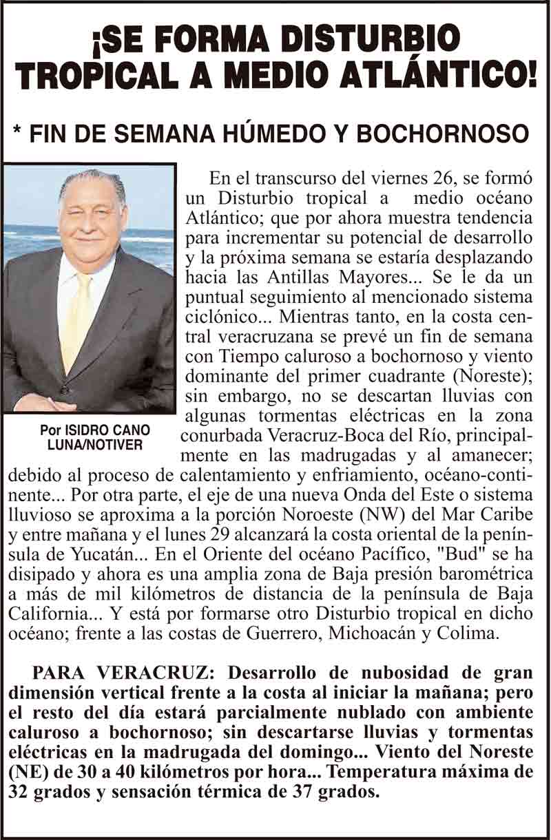 PRIMERA ¡SE FORMA DISTURBIO TROPICAL A MEDIO ATLÁNTICO! - *FIN DE SEMANA HÚMEDO Y BOCHORNOSO 27 julio 2024 Más Noticias ¡YA HAY TERNA! - RAÚL PEIMBERT EN LA LISTA ¡“CEMENTERIO”! - DE ULÚAS ¡INAUGURA PATY OTRA CALLE! ¡NO LE CREYERON! - Y LO BUSCAN NOTI-MEME | - ECOS DEL INFORME! ¡VERÓNICA VA CON NAHLE! - Y AL CONGRESO ¡“FAST TRACK”! - *Mientras el Mariner salía y entraba de Pajaritos en Coatzacoalcos ¡OPERATIVO LUPE-REYES! ¡MANDAN LA BILLETIZA! - *Corea manda 150 mil dólares ¡CRISTINA GANA LA ELECCIÓN!