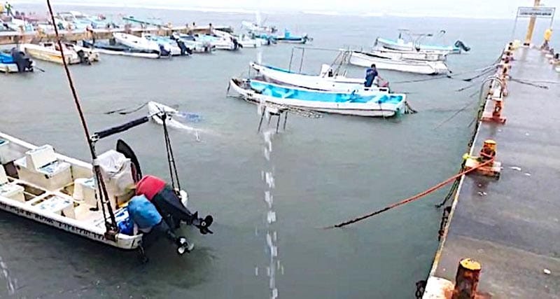 "El agua estuvo toda la noche, pero hubo lapsos que sí caía bastante lluvia y esto ocasionó que las bombas no se dieran abasto y ocasionó que se unieran las embarcaciones y hubo muchas más que estuvieron a punto de irse, pero los pescadores que lograron llegar al muro empezaron a sacar agua a muchas de ellas", agregó.