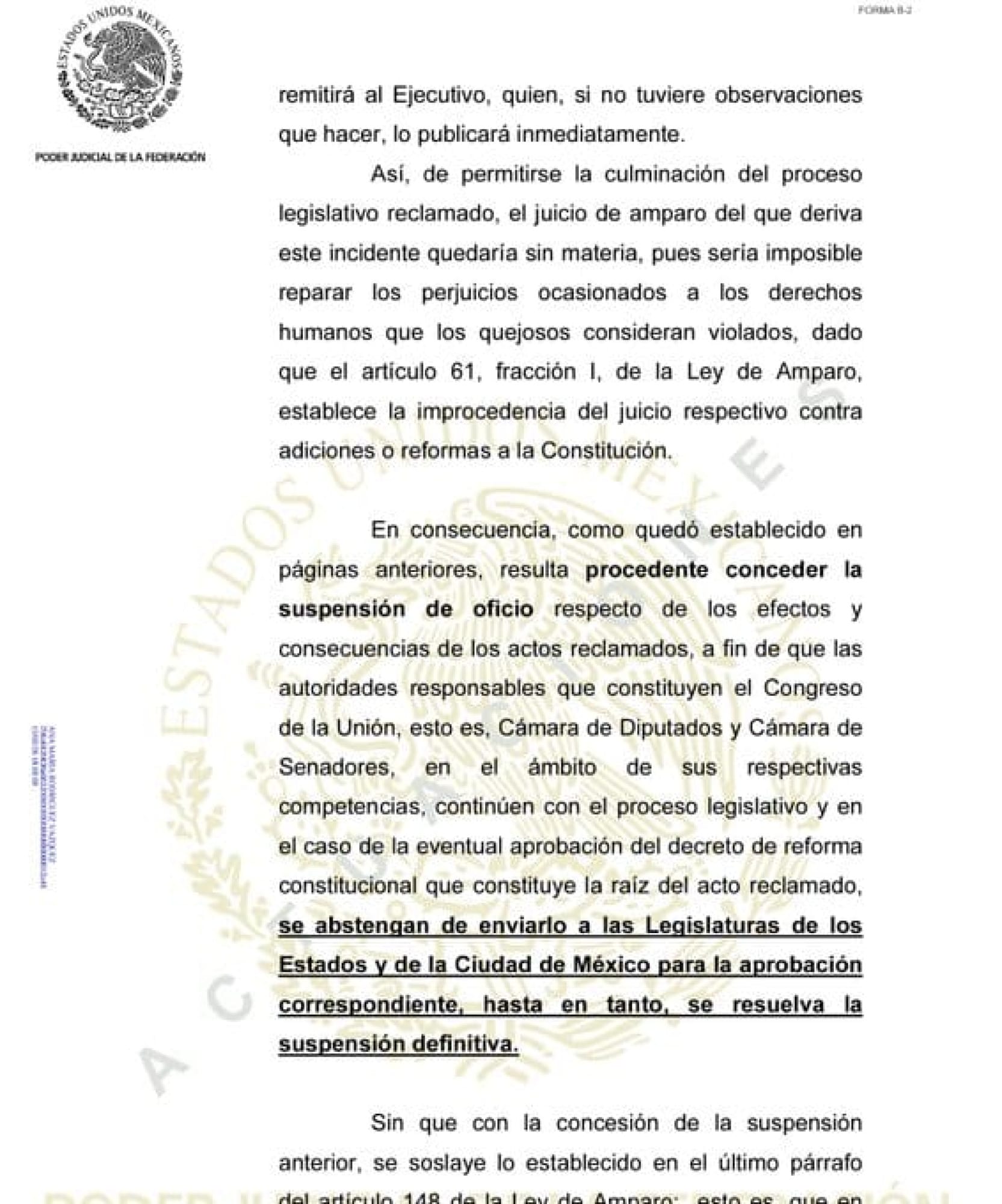 (AVC).- Fue la jueza Quinto de Distrito en el estado de Morelos, con residencia en Cuernavaca, Martha Eugenia Magaña López, quien concedió esta suspensión provisional que impide a la Cámara de Diputados discutir el dictamen que fue aprobado en comisiones y, por tanto, aprobarlo.