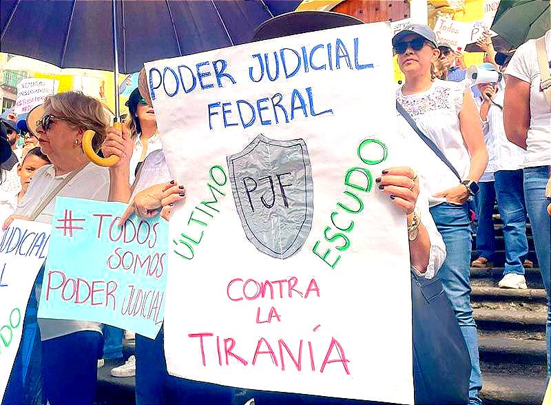 “Sin Poder Judicial, ¿quién te va a amparar?” Y “No somos oposición, servimos a la nación”, hombres y mujeres se congregaron en Plaza Lerdo, en la capital del estado, cerca de las 10 de la mañana.
