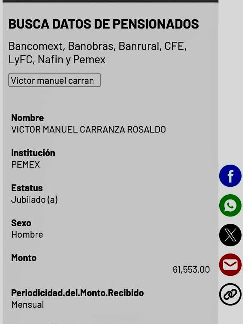 Víctor Manuel Carranza Rosaldo, exalcalde de Coatzacoalcos, al sur del estado de Veracruz, pidió públicamente trabajo al asegurar que su pensión ya no le alcanza para vivir, tras la reducción aplicada a jubilados de Pemex por la reforma al Artículo 127 Constitucional.