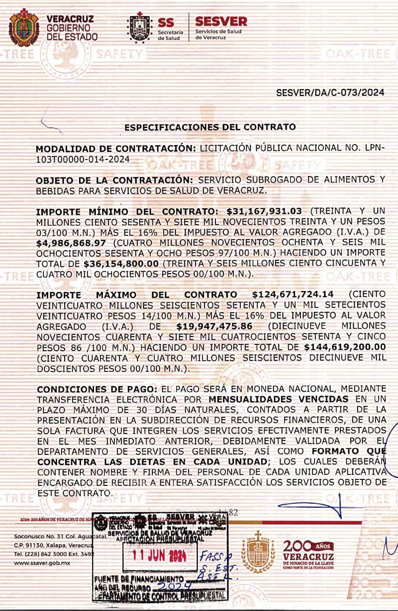 Según se informó, dicha empresa se identifica con el nombre de Café Bersa y desde hace años es la responsable de la preparación de alimentos en hospitales de Veracruz.