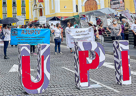 Este jueves nuevamente integrantes de AJUPIV se manifestaron en el centro de la capital del estado , Xalapa, debido a que desde el 2021 sus seguros no fueron renovados.