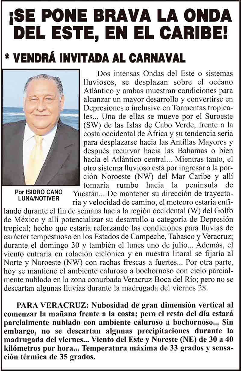 PRIMERA ¡SE PONE BRAVA LA ONDA DEL ESTE, EN EL CARIBE! - *VENDRÁ INVITADA AL CARNAVAL 27 junio 2024 Más Noticias ¡YA HAY TERNA! - RAÚL PEIMBERT EN LA LISTA ¡“CEMENTERIO”! - DE ULÚAS ¡INAUGURA PATY OTRA CALLE! ¡NO LE CREYERON! - Y LO BUSCAN NOTI-MEME | - ECOS DEL INFORME! ¡VERÓNICA VA CON NAHLE! - Y AL CONGRESO ¡“FAST TRACK”! - *Mientras el Mariner salía y entraba de Pajaritos en Coatzacoalcos ¡OPERATIVO LUPE-REYES! ¡MANDAN LA BILLETIZA! - *Corea manda 150 mil dólares ¡CRISTINA GANA LA ELECCIÓN!