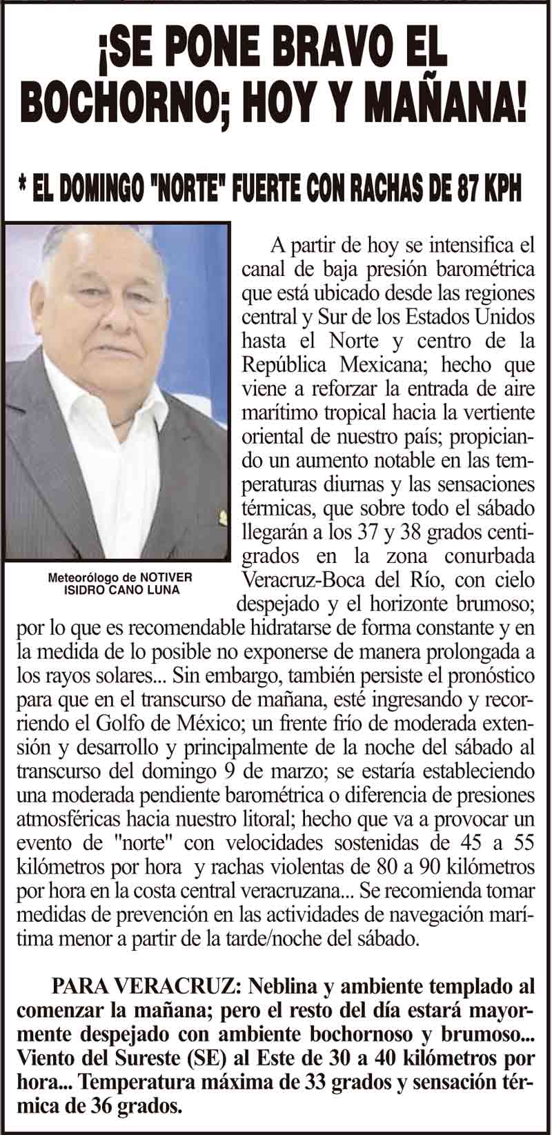 PRIMERA ¡SE PONE BRAVO EL BOCHORNO; HOY Y MAÑANA! - *EL DOMINGO "NORTE" FUERTE CON RACHAS DE 87 KPH 7 marzo 2025