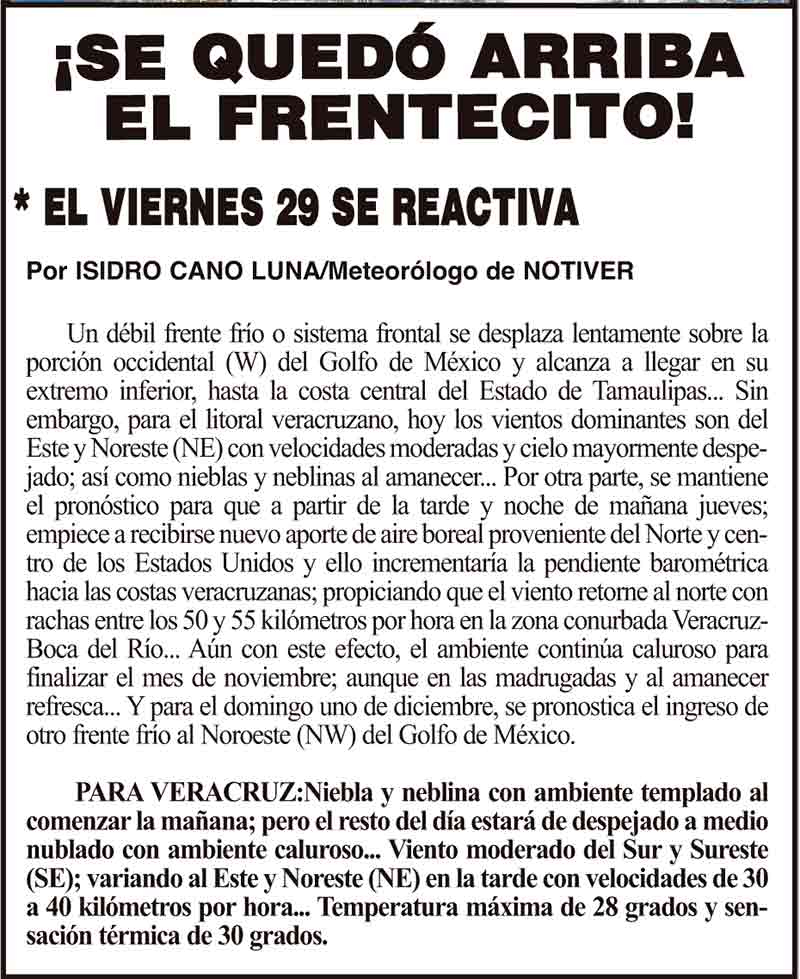 PRIMERA ¡SE QUEDÓ ARRIBA EL FRENTECITO! - *EL VIERNES 29 SE REACTIVA 27 noviembre 2024 Más Noticias ¡YA HAY TERNA! - RAÚL PEIMBERT EN LA LISTA ¡“CEMENTERIO”! - DE ULÚAS ¡INAUGURA PATY OTRA CALLE! ¡NO LE CREYERON! - Y LO BUSCAN NOTI-MEME | - ECOS DEL INFORME! ¡VERÓNICA VA CON NAHLE! - Y AL CONGRESO ¡“FAST TRACK”! - *Mientras el Mariner salía y entraba de Pajaritos en Coatzacoalcos ¡OPERATIVO LUPE-REYES! ¡MANDAN LA BILLETIZA! - *Corea manda 150 mil dólares ¡CRISTINA GANA LA ELECCIÓN!