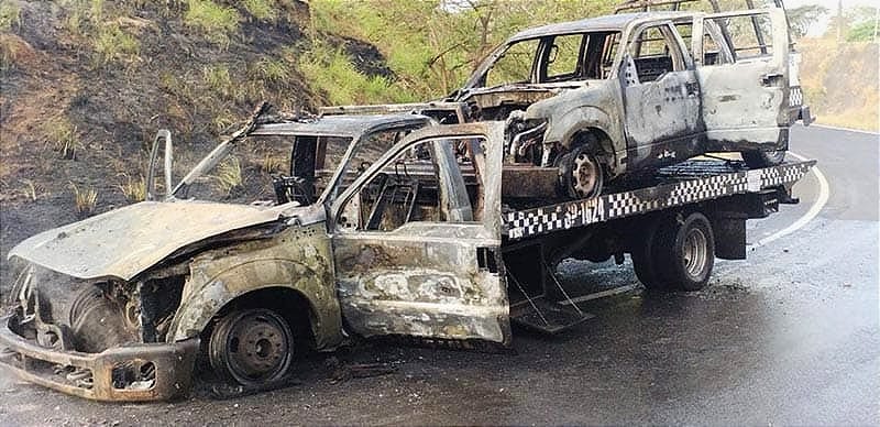 Lo grave fue que las llamas se extendieron y alcanzaron a la patrulla por lo que el incendio consumió ambas unidades en cuestión de minutos, al percatarse de los hechos el chofer intentó apagar el fuego pero no logró el objetivo, por lo que dio aviso a los cuerpos de emergencia.