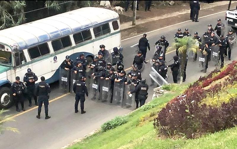 Por la mañana de este jueves, los pobladores empezaron a pedir ayuda ya que a la zona llegaron al menos 4 camiones de la Secretaría de Seguridad Pública (SSP) y 7 patrullas con granaderos.