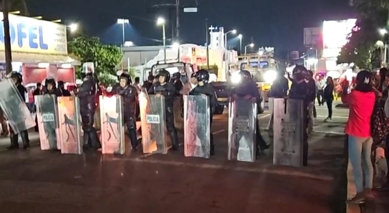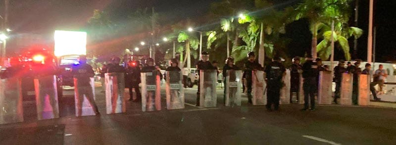 Funcionarios de la Secretaría de Gobierno llegaron a negociar con los inconformes, pero justo en ese mismo momento, a manera de intimidación, arribaron varias patrullas con granaderos que cargaban toletes, escudos y cascos, quienes formaron una valla a un costado del Palacio Municipal.