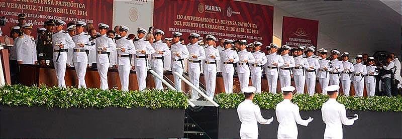 En la Heroica Escuela Naval Militar se recordó que los héroes del 21 de abril de 1914 ofrendaron sus vidas en defensa de la patria en contra de una invasión por parte de Estados Unidos.