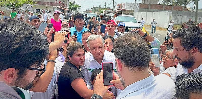 * AMLO se bajó de la camioneta en Antón Lizardo, saludó, abrazó, se tomó selfies