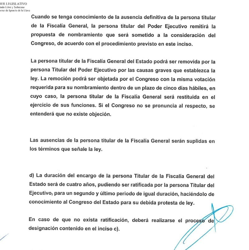 La iniciativa, - unifica propuestas previas de legisladores de Morena y el PT- busca restituir a la persona titular del Poder Ejecutivo, hoy la Gobernadora Rocío Nahle García, la facultad de proponer, remover y ratificar al Fiscal, notificando de esta última acción al Congreso.