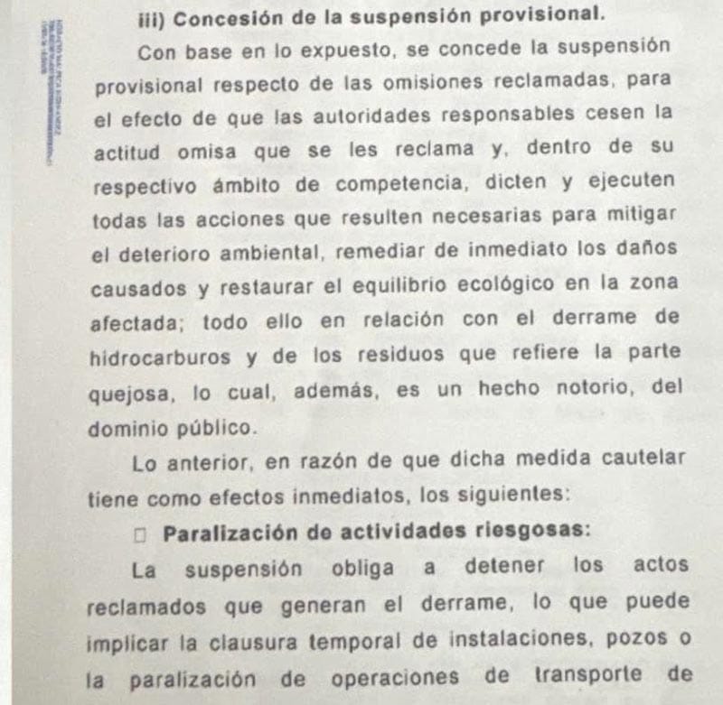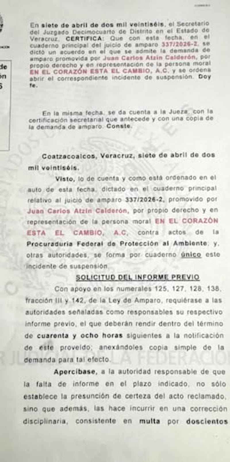 Un Juzgado de Distrito con sede en Coatzacoalcos concedió una segunda suspensión provisional dentro del juicio de amparo promovido contra las omisiones de las autoridades federales ante el derrame de hidrocarburos que afecta las costas de Veracruz.