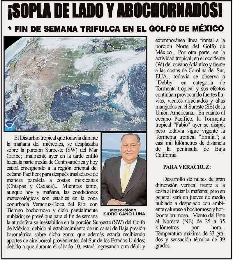 PRIMERA ¡SOPLA DE LADO Y ABOCHORNADOS! - *FIN DE SEMANA TRIFULCA EN EL GOLFO DE MÉXICO 8 agosto 2024 Más Noticias ¡COMIENZA “PONTE OREJA”! - *100 boqueños beneficiados con estudios de audiometría ¡NI UNA BOMBA MÁS! - POR AHORA... ¡CAMBIOS EN LA CANACAR! ¡PELÍCANOS MUERTOS! - ALERTAN CONTAMINACIÓN ¡VA LA UV! - AL OBSERVATORIO ¡CARAMBOLA TRÁGICA! - EN LAS CUMBRES ¡PARAN LOS QUETZALLI! - *Operadores realizaron paro parcial por jornadas de casi 20 horas y bajos pagos ¡SE VAN A ASTURIAS! ¡MANIOBRISTAS VS. PULIDO! - YA SE ARMÓ ¡CHAPOPOTAZO! - PA’SUMECHA