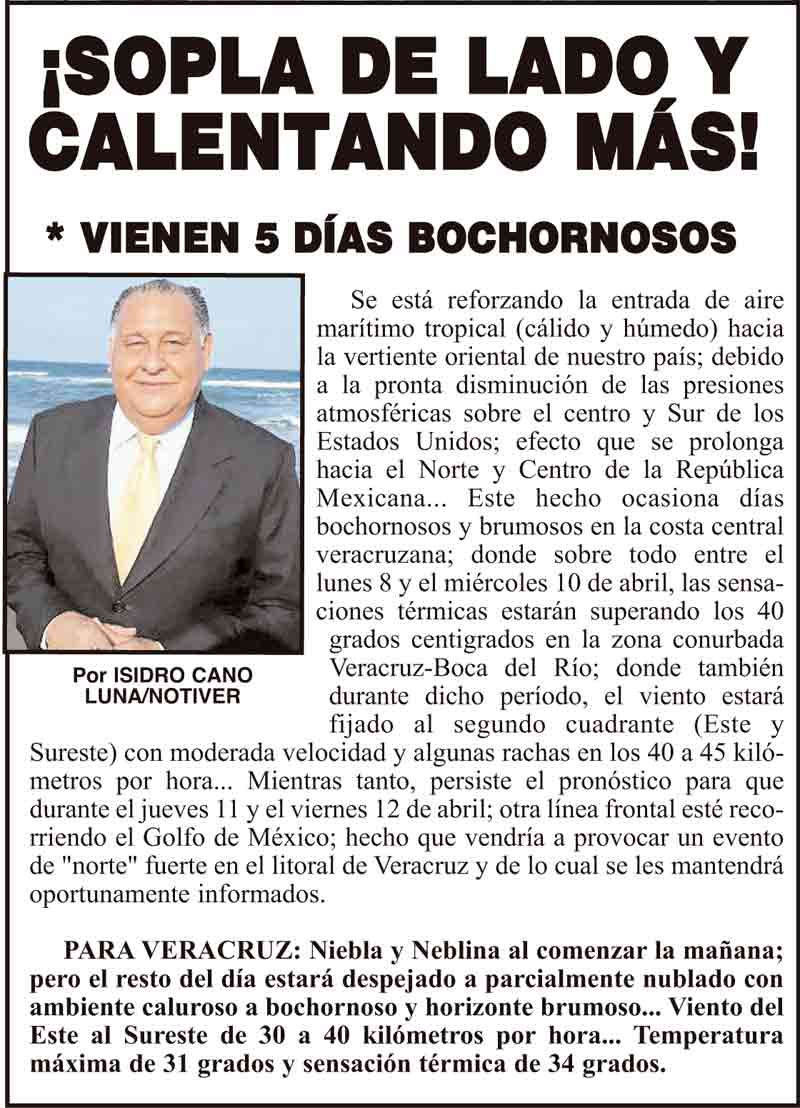 PRIMERA ¡SOPLA DE LADO Y CALENTANDO MÁS! - *VIENEN 5 DÍAS BOCHORNOSOS 6 abril 2024 Más Noticias ¡YA HAY TERNA! - RAÚL PEIMBERT EN LA LISTA ¡“CEMENTERIO”! - DE ULÚAS ¡INAUGURA PATY OTRA CALLE! ¡NO LE CREYERON! - Y LO BUSCAN NOTI-MEME | - ECOS DEL INFORME! ¡VERÓNICA VA CON NAHLE! - Y AL CONGRESO ¡“FAST TRACK”! - *Mientras el Mariner salía y entraba de Pajaritos en Coatzacoalcos ¡OPERATIVO LUPE-REYES! ¡MANDAN LA BILLETIZA! - *Corea manda 150 mil dólares ¡CRISTINA GANA LA ELECCIÓN!