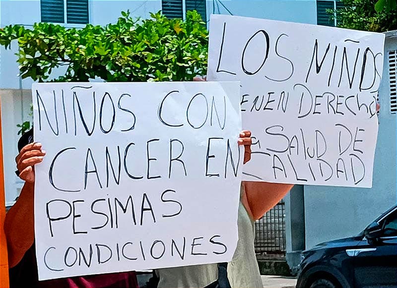 “Estamos manifestándonos por la simple razón de que no tenemos aire acondicionado en el quinto piso, ¿qué es el quinto piso? Es el área de Oncología, donde están niños con cáncer, niños con tumores; yo estoy aquí desde hace tres semanas, anteriormente estuve dos semanas y no hay clima, se siente un calor infernal y la quimioterapia es caliente”, agregó.