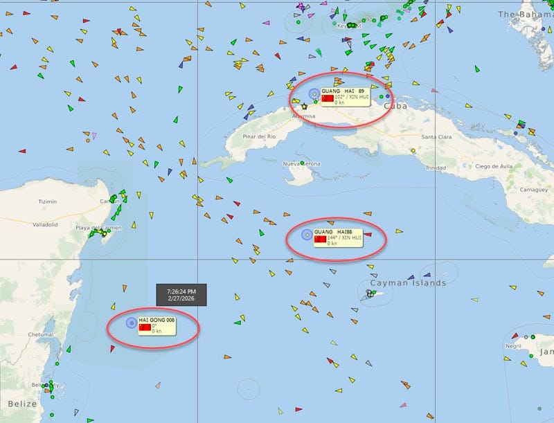 Además de tres barcos chinos, que se encuentran ubicados entre Cuba y Playa del Carmen y Chetumal.