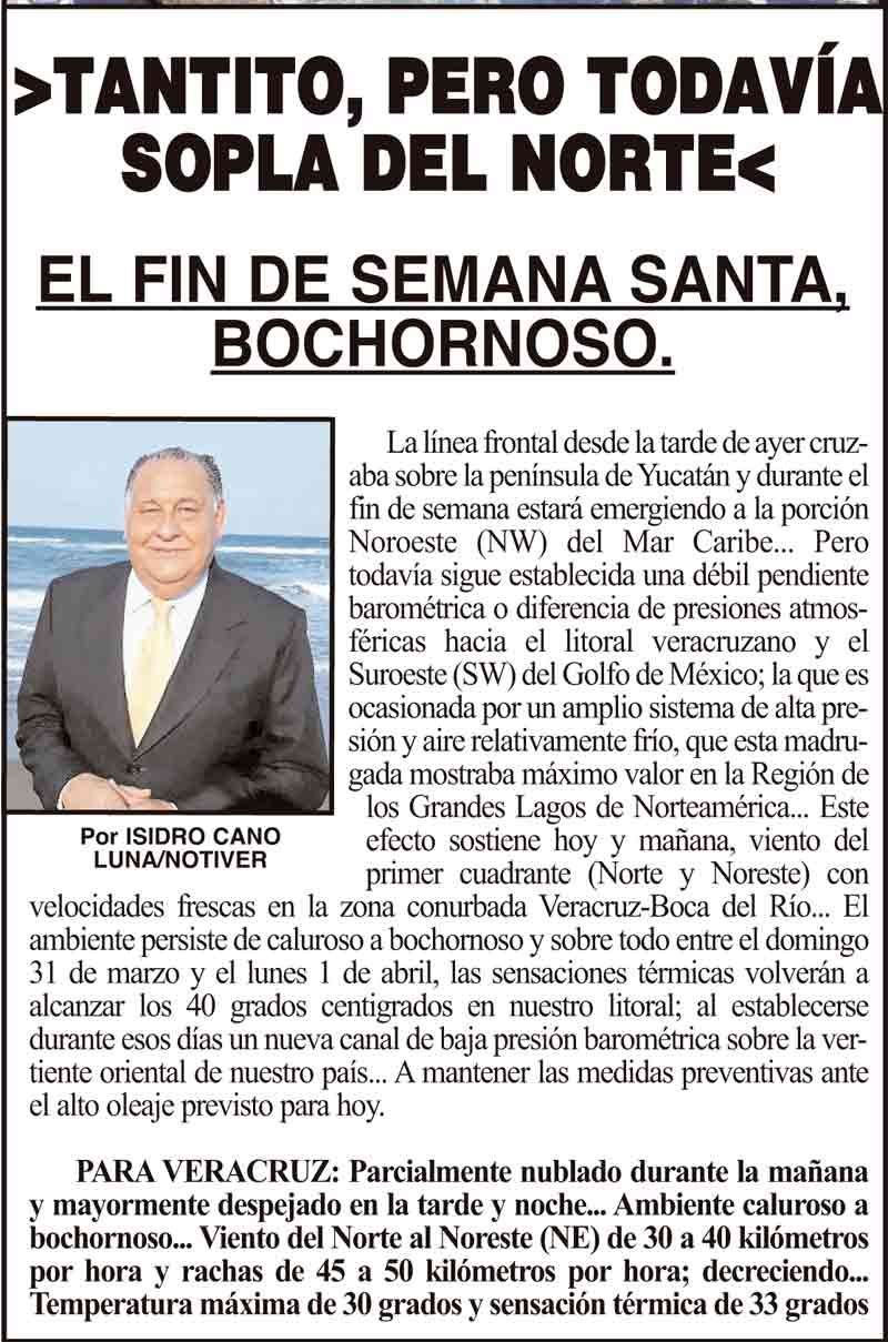 PRIMERA >TANTITO, PERO TODAVÍA SOPLA DEL NORTE< - EL FIN DE SEMANA SANTA, BOCHORNOSO... 28 marzo 2024 Más Noticias ¡YA HAY TERNA! - RAÚL PEIMBERT EN LA LISTA ¡“CEMENTERIO”! - DE ULÚAS ¡INAUGURA PATY OTRA CALLE! ¡NO LE CREYERON! - Y LO BUSCAN NOTI-MEME | - ECOS DEL INFORME! ¡VERÓNICA VA CON NAHLE! - Y AL CONGRESO ¡“FAST TRACK”! - *Mientras el Mariner salía y entraba de Pajaritos en Coatzacoalcos ¡OPERATIVO LUPE-REYES! ¡MANDAN LA BILLETIZA! - *Corea manda 150 mil dólares ¡CRISTINA GANA LA ELECCIÓN!