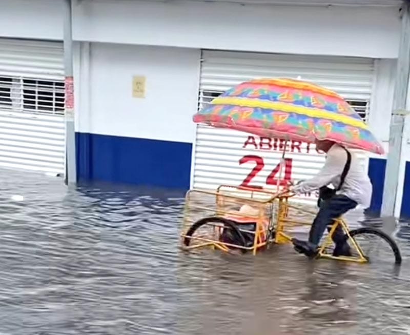 Y mientras en el sur estaban empapados por el bochorno, en la zona norte, en avenidas como Yáñez los encharcamientos no se hicieron esperar y muchos salieron a sus labores con el agua hasta la cintura.
