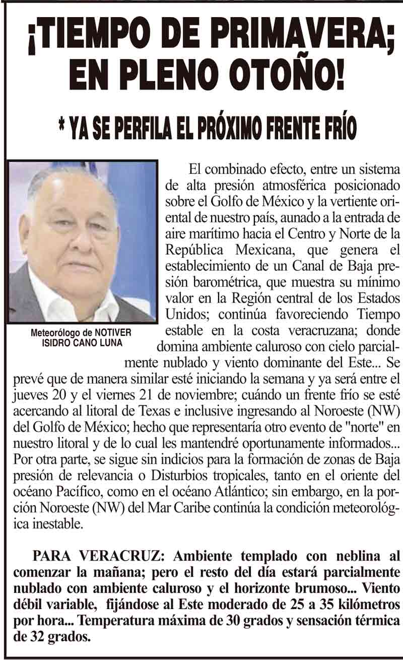 PRIMERA ¡TIEMPO DE PRIMAVERA; EN PLENO OTOÑO! - *YA SE PERFILA EL PRÓXIMO FRENTE FRÍO 16 noviembre 2025 Más Noticias LA ENCUESTA | - ME ESTÁS OYENDO INÚTIL?... ¡CON BAILONGOS QUIEREN AYUDAR A LOS DAMNIFICADOS DEL NORTE! - *El mismo Alor, toca los timbales ¡YA SE LA APROBARON! - REFORMA PARA LA FISCALÍA ESTATAL NOTI-MEME | - ASÍ ESTUVO EL INFORME... ¡MÁS DE 9 MIL MILLONES! - *Eso costaría cancelar en Veracruz al Grupo MAS ¡LE DAN LUZ VERDE! - DESDE GUATEMALA ¡EL CUARTO! ¡Y COM-PA-RE-CIÓ! - ÁNDALE... ¡NO SE VA LISBETH AURELIA! - *Descarta ir a la Fiscalía y que seguirá como magistrada ¡CREAN EL SÚPER MAÍZ!