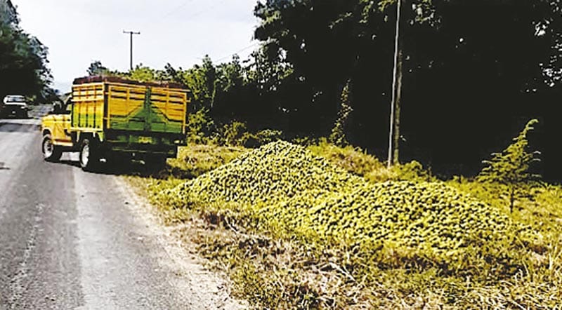 Veracruz, Ver. Los caminos rurales de la región de Martínez de la Torre están plagados de tiraderos de cítricos debido a que productores veracruzanos optaron por desecharlos ante los bajos costos que tienen y que aseguran sólo benefician a los ‘coyotes’.