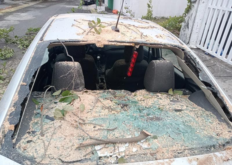 (AVC).. Derivado de las fuertes rachas de viento registradas durante la madrugada de este sábado por la presencia del Frente Frío No. 32 en la ciudad de Veracruz, personal de Protección Civil Municipal atendió la caída de tres árboles en distintos puntos de la ciudad, uno de ellos sobre un vehículo, sin que se reportaran personas lesionadas.