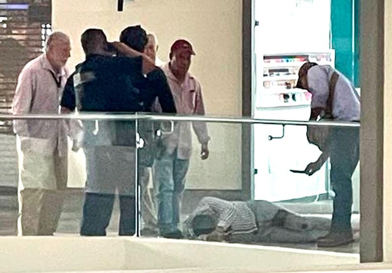 Testigos que estaban comiendo o de compras relataron que escucharon, por lo menos, unas 10 detonaciones, por lo que hubo una avalancha humana de personas que corrieron a las salidas para ponerse a salvo.