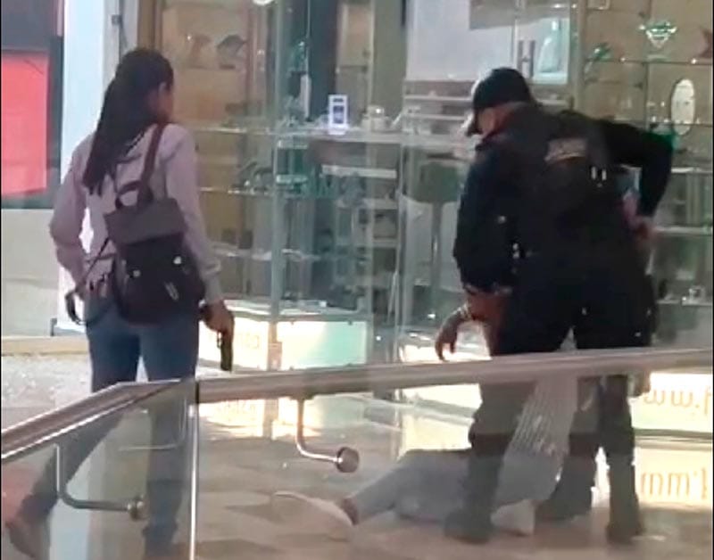 Hombres armados ingresaron al centro comercial e intentaron asaltar una joyería, sin embargo, no contaban que en el interior estaban elementos de la Secretaría de Seguridad Pública del Estado vestidos de civil.