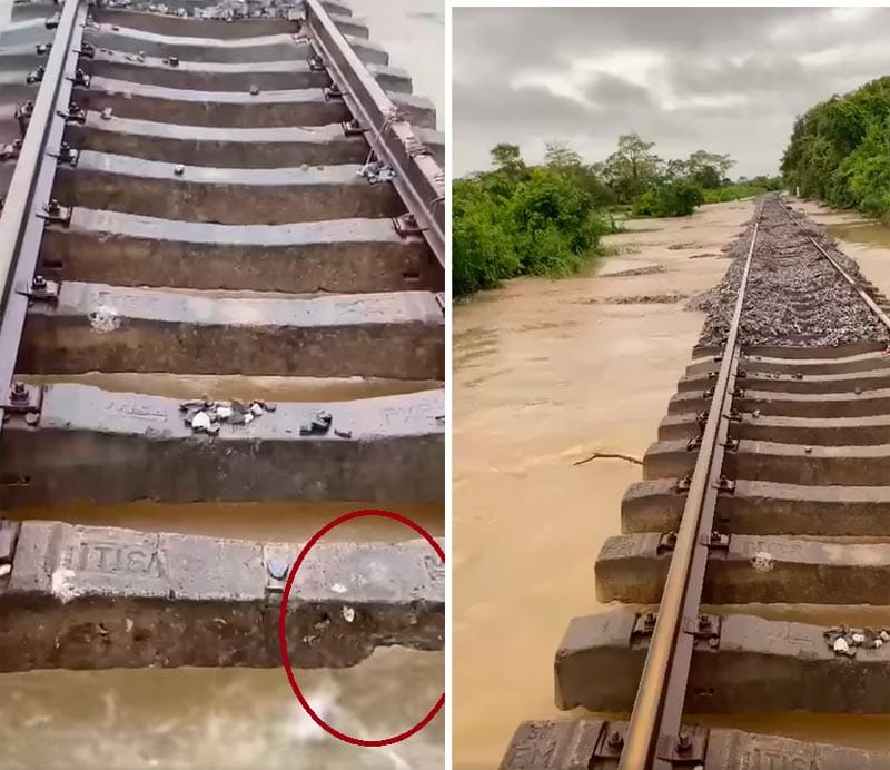 De acuerdo a las imágenes captadas la zona está inundada y le pasó por debajo a los rieles, se llevó el Balastro, el llamado "Oro Pétreo" de los últimos años y algunos durmientes presentaron erosión.