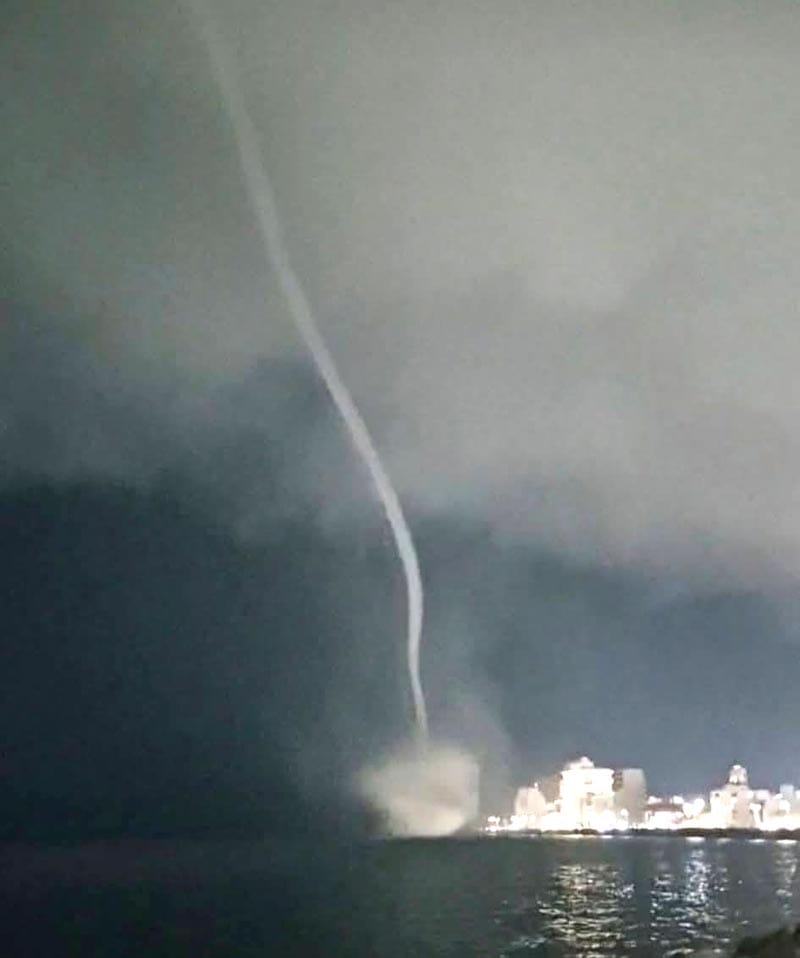 Una Tromba Marina de tamaño considerable, lo suficiente para ser vista en distintos puntos de la ciudad, se formó frente a la costa de Veracruz, concretamente frente a la Isla de Sacrificios y avanzó hacia el bulevar Ávila Camacho, pegando contra edificios y torres.