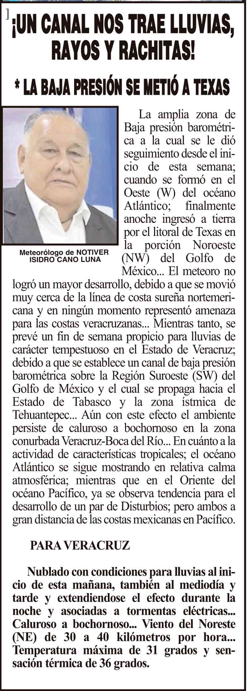 PRIMERA ¡UN CANAL NOS TRAE LLUVIAS, RAYOS Y RACHITAS! - *LA BAJA PRESIÓN SE METIÓ A TEXAS 26 julio 2025 Más Noticias LA PORTADA - VIERNES 5 DE DICIEMBRE 2025 ¡HOY SOPLA FRESCO Y DE FRENTE! - *PERO EL LUNES 8, ESTARÁ FUERTE Y CON LLUVIAS. LA ENCUESTA | - ME ESTÁS OYENDO INÚTIL?... ¡CON BAILONGOS QUIEREN AYUDAR A LOS DAMNIFICADOS DEL NORTE! - *El mismo Alor, toca los timbales ¡YA SE LA APROBARON! - REFORMA PARA LA FISCALÍA ESTATAL NOTI-MEME | - ASÍ ESTUVO EL INFORME... ¡MÁS DE 9 MIL MILLONES! - *Eso costaría cancelar en Veracruz al Grupo MAS ¡LE DAN LUZ VERDE! - DESDE GUATEMALA ¡EL CUARTO! ¡Y COM-PA-RE-CIÓ! - ÁNDALE...