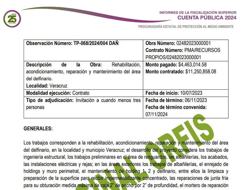 La remodelación del Aquarium de Veracruz tiene un presunto desfalco de 81 millones 381 mil pesos.