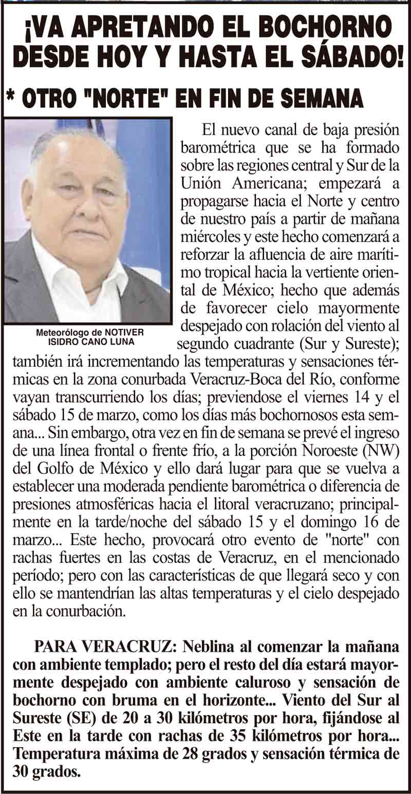 PRIMERA ¡VA APRETANDO EL BOCHORNO DESDE HOY Y HASTA EL SÁBADO! - *OTRO "NORTE" EN FIN DE SEMANA 11 marzo 2025 Más Noticias ¡BLOQUEO DEL SECTOR SALUD EN PLAN DE RÍO! ¡TRAGEDIA EN LA AUTOPISTA VERACRUZ–XALAPA! NOTI-MEME | - YA LLEGÓ LA RAMA! LA ENCUESTA | - YA VIENE! ¡RECONOCIMIENTO A DIRIGENTE DE TAXISTAS! ¡LE VAN A ENTRAR! - *Claudia ordena a Nahle ¡QUIEREN MANDOS DE LA MARINA! - EN LAS POLICÍAS MUNICIPALES ¡ATACA EL VIRUS COXSACKIE, HAY 71 CASOS! - *Con mayor incidencia en 2025 y casos concentrados en Xalapa y Veracruz LOS CARTONES ¡SALMA SACA VIDEO! - RETEMUNDIAL...
