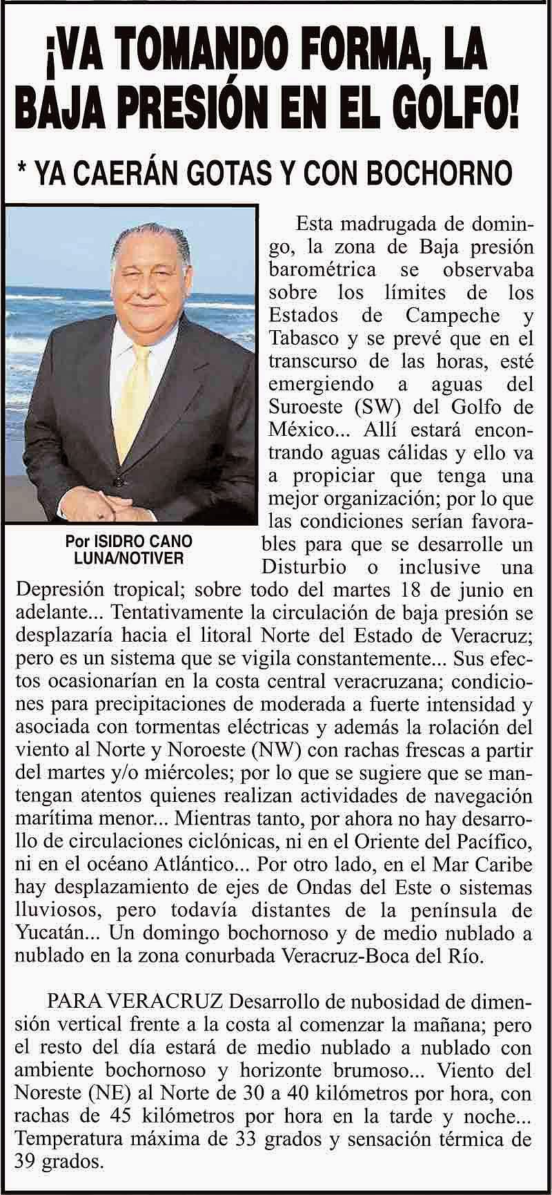 PRIMERA ¡VA TOMANDO FORMA, LA BAJA PRESIÓN EN EL GOLFO! - *YA CAERÁN GOTAS Y CON BOCHORNO 16 junio 2024 Más Noticias ¡YA HAY TERNA! - RAÚL PEIMBERT EN LA LISTA ¡“CEMENTERIO”! - DE ULÚAS ¡INAUGURA PATY OTRA CALLE! ¡NO LE CREYERON! - Y LO BUSCAN NOTI-MEME | - ECOS DEL INFORME! ¡VERÓNICA VA CON NAHLE! - Y AL CONGRESO ¡“FAST TRACK”! - *Mientras el Mariner salía y entraba de Pajaritos en Coatzacoalcos ¡OPERATIVO LUPE-REYES! ¡MANDAN LA BILLETIZA! - *Corea manda 150 mil dólares ¡CRISTINA GANA LA ELECCIÓN!
