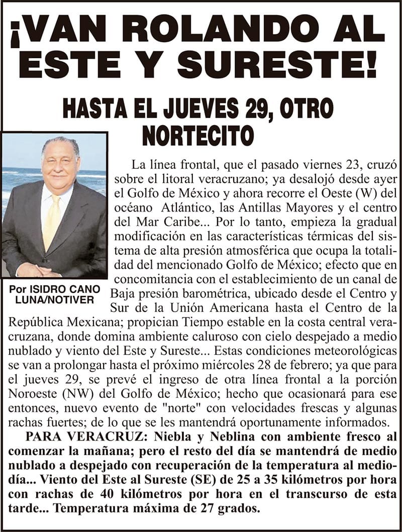 PRIMERA ¡VAN ROLANDO AL ESTE Y SURESTE! ¡VAN ROLANDO AL ESTE Y SURESTE! 25 febrero 2024 Más Noticias LA ENCUESTA | - ME ESTÁS OYENDO INÚTIL?... ¡CON BAILONGOS QUIEREN AYUDAR A LOS DAMNIFICADOS DEL NORTE! - *El mismo Alor, toca los timbales ¡YA SE LA APROBARON! - REFORMA PARA LA FISCALÍA ESTATAL NOTI-MEME | - ASÍ ESTUVO EL INFORME... ¡MÁS DE 9 MIL MILLONES! - *Eso costaría cancelar en Veracruz al Grupo MAS ¡LE DAN LUZ VERDE! - DESDE GUATEMALA ¡EL CUARTO! ¡Y COM-PA-RE-CIÓ! - ÁNDALE... ¡NO SE VA LISBETH AURELIA! - *Descarta ir a la Fiscalía y que seguirá como magistrada ¡CREAN EL SÚPER MAÍZ!