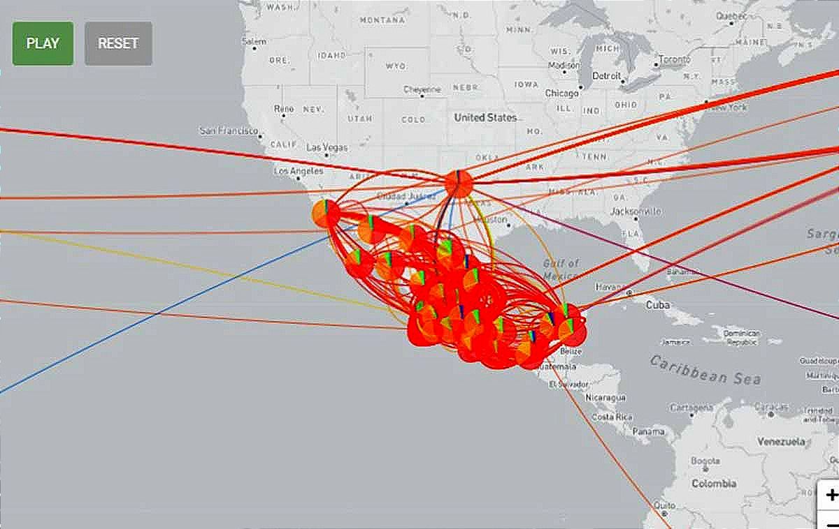 En un mapeo de movilidad sobe como se desplaza la cepa de la nueva variante de COVID la plataforma dijo que la propagación avanza rápidamente.