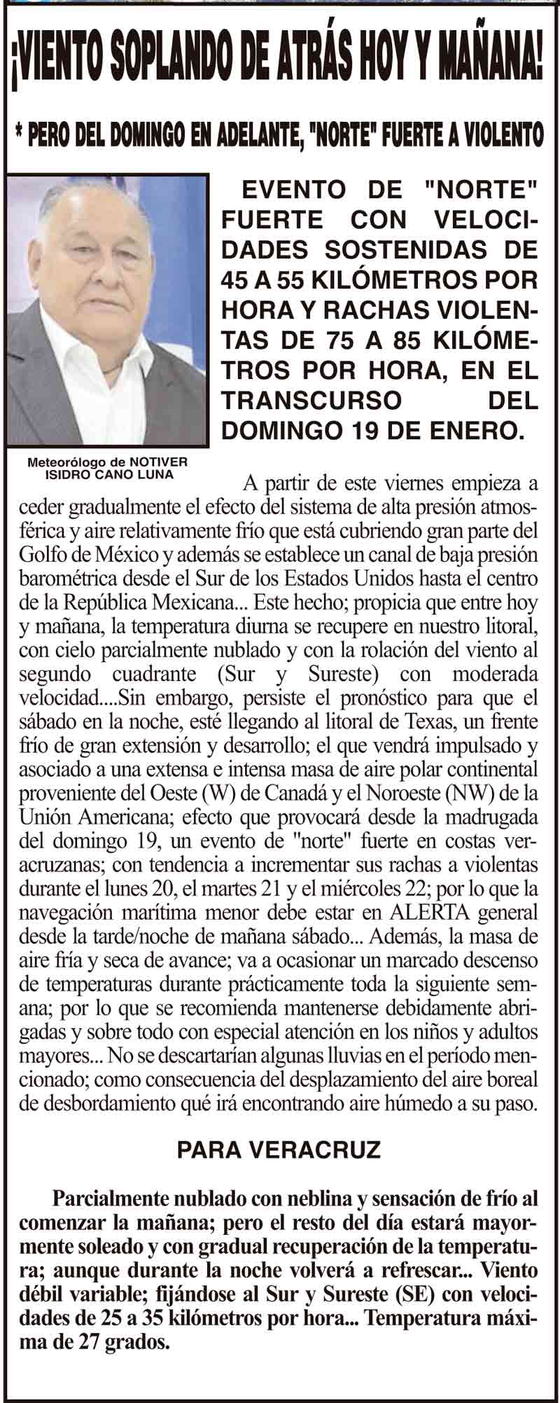 PRIMERA ¡VIENTO SOPLANDO DE ATRÁS HOY Y MAÑANA! - *PERO DEL DOMINGO EN ADELANTE, "NORTE" FUERTE A VIOLENTO 17 enero 2025 Más Noticias ¡YA TIENE PUENTAZO EL SEGURO! ¡LA CARTELERA! | LA ÚLTIMA Y NOS VAMOS - De vacaciones andamos en Papantla, Veracruz, y en días pasados escuchamos dos charlas sobre los exploradores y la iconografía del basamento de los Nichos y El Tajín, en el Museo Teodoro Cano… ¡MAESTROS TENDRÁN BONO Y AGUINALDO! ¡LES MOCHAN EL AGUA A RÍO MEDIO! - *Por mantenimiento ¡SALE HUMO DE LAS ALCANTARILLAS! - *Explosiones en Jardines de Mocambo ¡LEY GARROTE! - *Paguen ya impuestos o van multas ¡YA TIENE MURAL TITO NIEVES! ¡PRESENTA LOTERÍA NACIONAL EL ÁLBUM DEL MUNDIAL! LOS CARTONES ¡PREVENCIONES PARA EVITAR EL INCREMENTO DE LAS INFECCIONES RESPIRATORIAS AGUADAS!