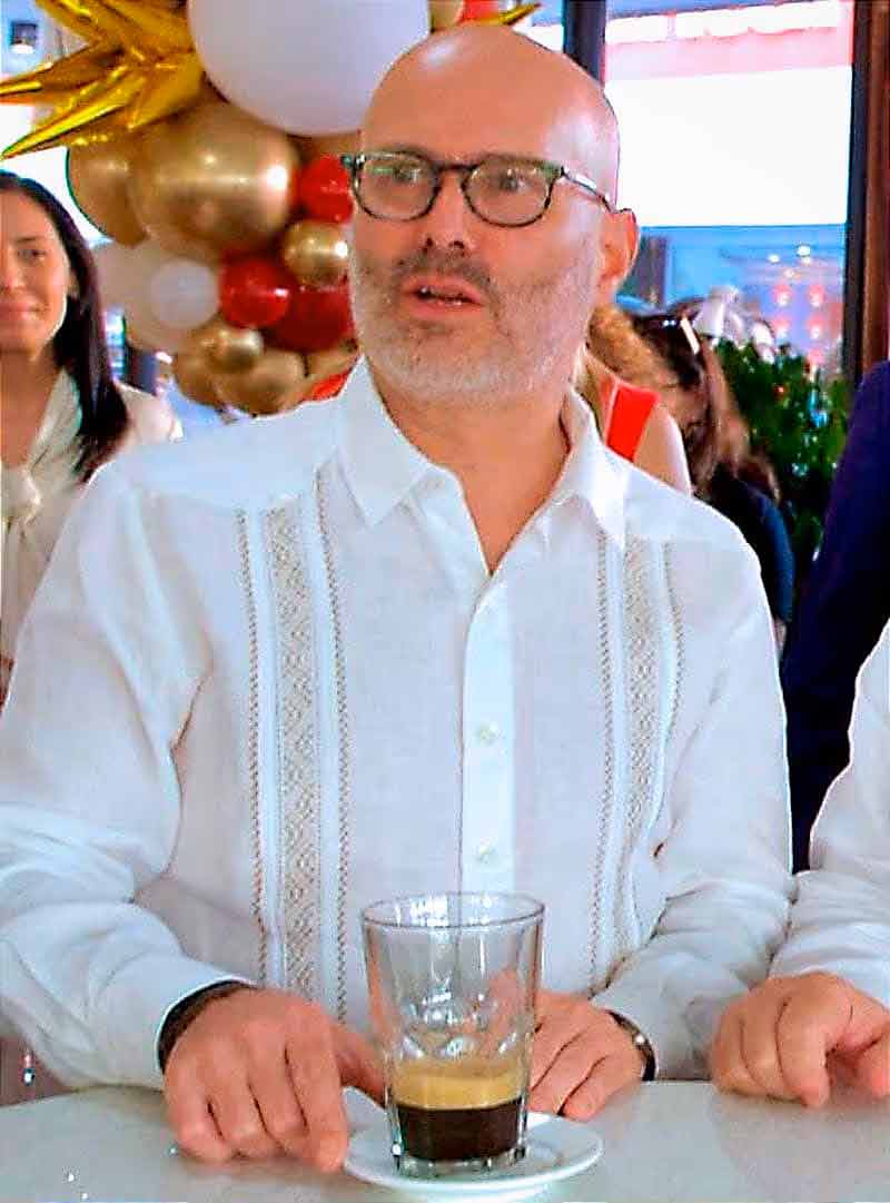 De mediana estatura y lentes, vestido como lo dijo la invitación, de blanco, fue quien presidió el corte de listón y el que se animó a dar el primer tijerazo, no alcanzaron las tijeras pues ha sido como tenía que ser, al tratarse del Café La Parroquia, representante de Veracruz ante el mundo en materia de "cafés", el corte de listón más inclusivo de la historia.