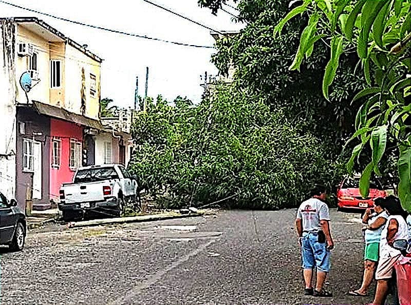 Además en la colonia Astilleros del municipio porteño, otro árbol derribó cables de alta tensión y también cayó al suelo.