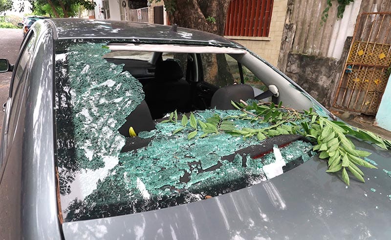 * Hay arboles caídos sobre vehículos por viento del Norte en Veracruz-Boca del Río