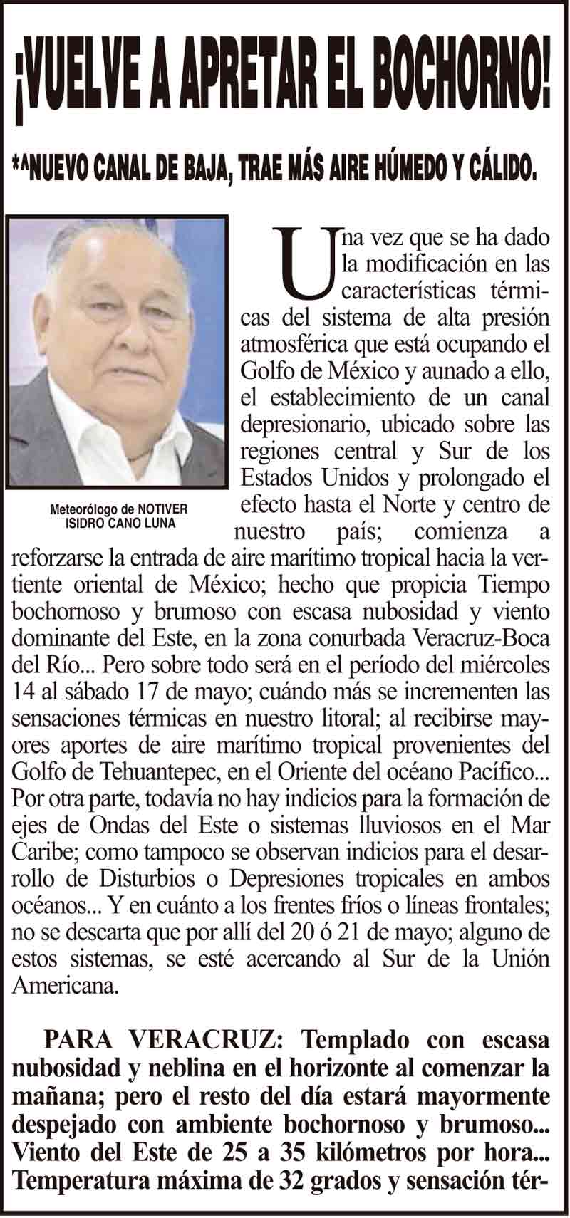 PRIMERA ¡VUELVE A APRETAR EL BOCHORNO! - *^NUEVO CANAL DE BAJA, TRAE MÁS AIRE HÚMEDO Y CÁLIDO. 13 mayo 2025 Más Noticias LA PORTADA - SÁBADO 6 DE DICIEMBRE 2025 ¡SE ESTÁ FORMANDO UN INTENSO "NORTE" PARA EL LUNES 8! - *UN FIN DE SEMANA CON CALOR, BRUMA Y DEL ESTE ¡YA HAY TERNA! - RAÚL PEIMBERT EN LA LISTA ¡“CEMENTERIO”! - DE ULÚAS ¡INAUGURA PATY OTRA CALLE! ¡NO LE CREYERON! - Y LO BUSCAN NOTI-MEME | - ECOS DEL INFORME! ¡VERÓNICA VA CON NAHLE! - Y AL CONGRESO ¡“FAST TRACK”! - *Mientras el Mariner salía y entraba de Pajaritos en Coatzacoalcos ¡OPERATIVO LUPE-REYES!